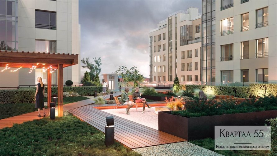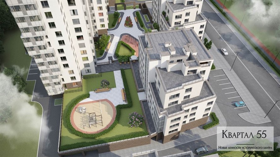 Дворы домов жилого комплекса являются закрытыми, оборудованы современными детскими игровыми и спортивными площадками с безопасным покрытием, предусмотрено озеленение, системы освещения. Дворы свободны от движения автомобилей, так как машины размещаются на современной подземной парковке.На первых этажах размещается коммерческая недвижимость.