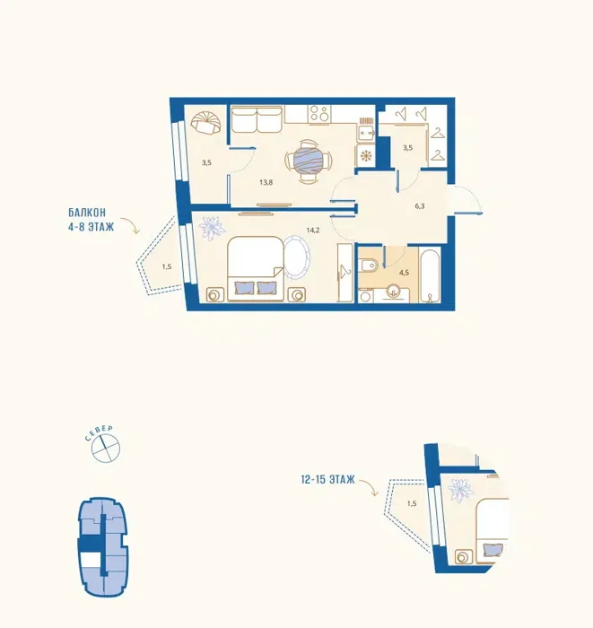 Площадь от 44.8 м2