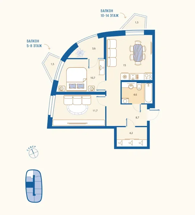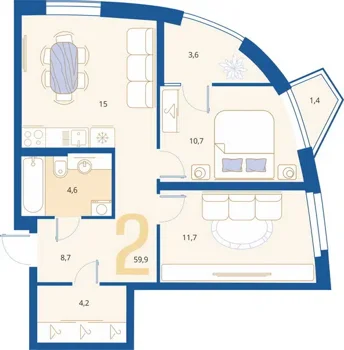 Площадь от 59.9 м2