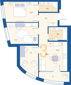 Площадь от 69.5 м2