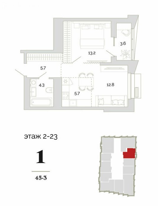 Площадь от 45.3 м2